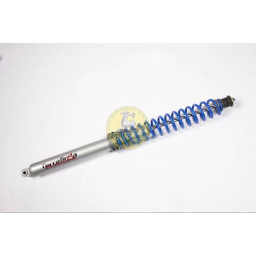 Terrafirma return to centre (RTC) steering damper is an uprated steering damper but most importantly by incorporating an external coil spring the self centering action is greatly enhanced. Especially important when using larger than standard tyres at lower than normal pressures.